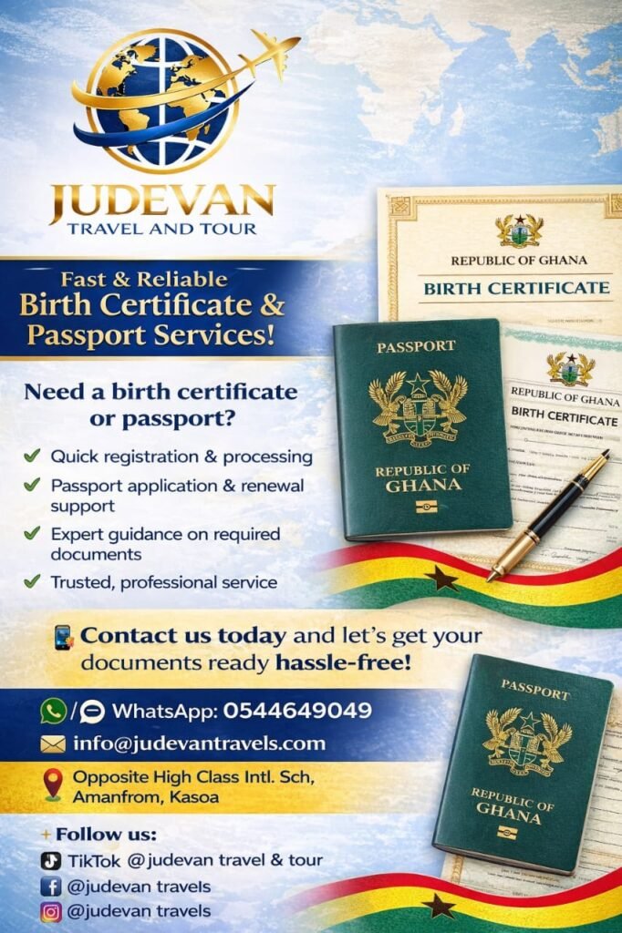 We assist with: Birth Certificate Applications, Passport Application and renewal support, Business Registration Support, Ghana Card Assistance, Company Bank Statements (to support your student visa applications), Expert guidance on required document..